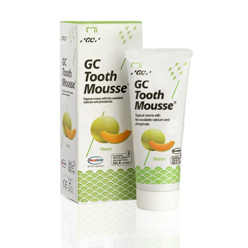Когда GC Tooth Mousse наносится на поверхность зубов, комплекс СРР-АСР свободно связывается с эмалью, био пленкой, зубным налетом, бактериями, гидроксиапатитом и мягкими тканями, доставляя кальций и фосфат именно туда, где они больше всего необходимы. Слюна увеличивает эффективность CPP-ACP, а приятный вкус продукта стимулирует слюноотделение. Мусс для Зубов действует быстро, в течение 2-5 минут, но чем дольше комплекс CPP-ACP находится в полости рта, тем эффективнее будет результат.